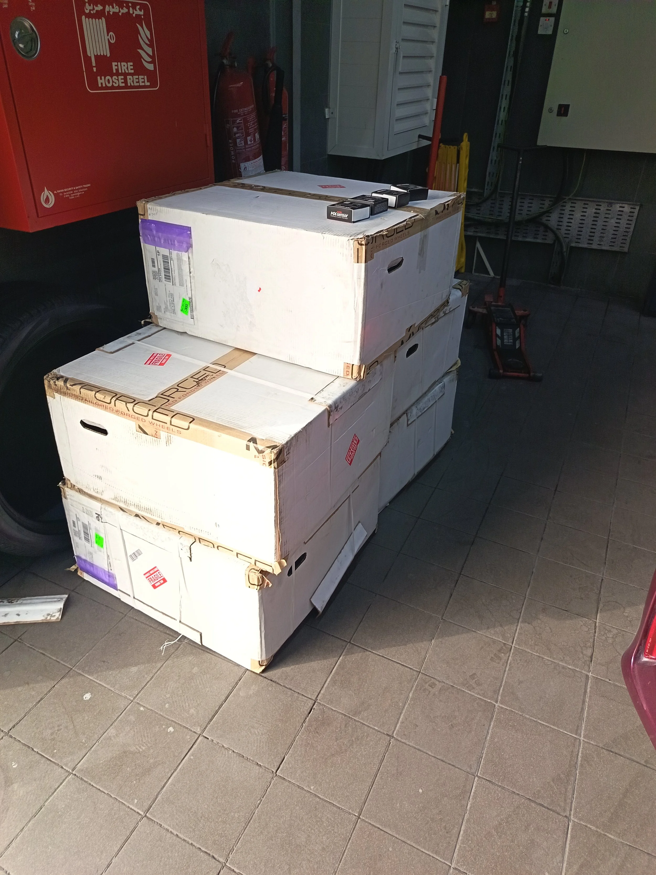 All boxes were carefully arranged and secured inside the truck to prevent movement. Extra attention was given to fragile automotive parts to ensure safe delivery.